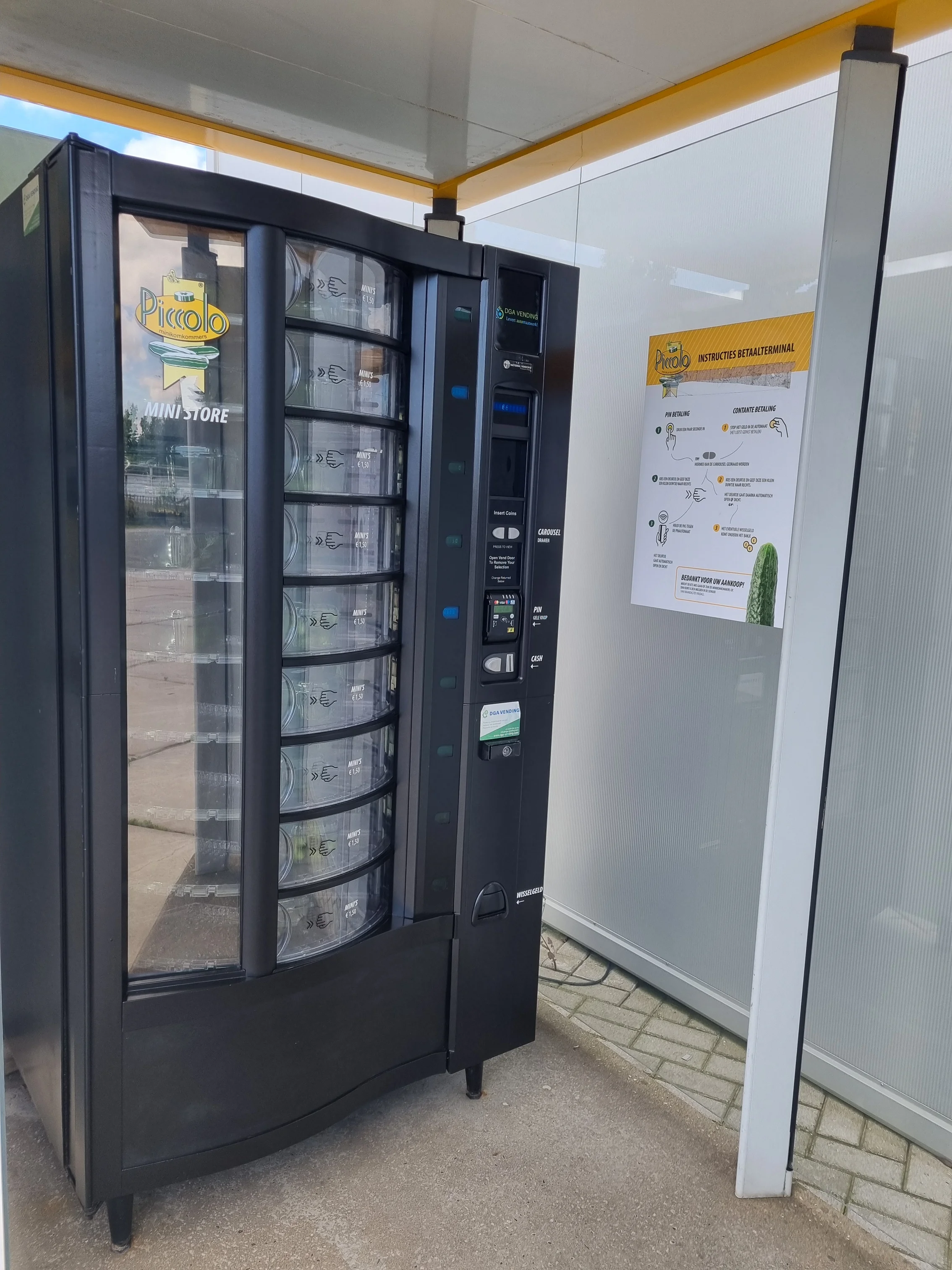 Op ons erf kunt u via de verkoopautomaat minikomkommers kopen rechtstreeks uit onze kassen.